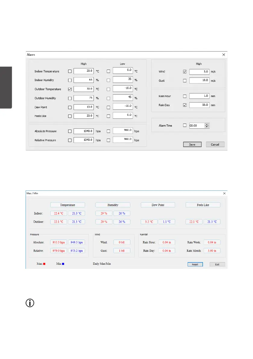 Ställ in larmgränser och aktivera/avaktiveraalarm. Görönskade inställningar och klicka