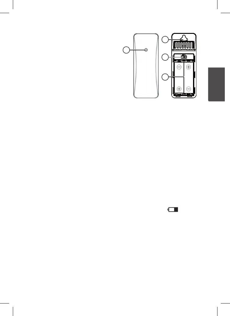 1. Skjut givarens batterilucka nedåt ipilens riktning.
