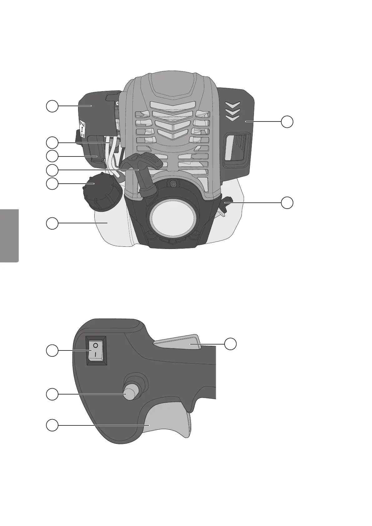 10. Kaasusäätimen lukitus (lukitsee kaasun puolikaasulle)