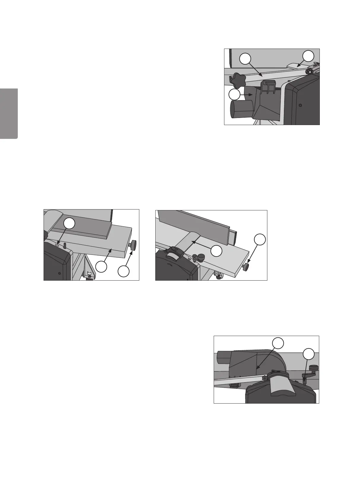 4. Tryck brädan mot inmatningsbordet och ställ in kutterskyddet (K) i(brädan ska nätt och jämnt kunna gå