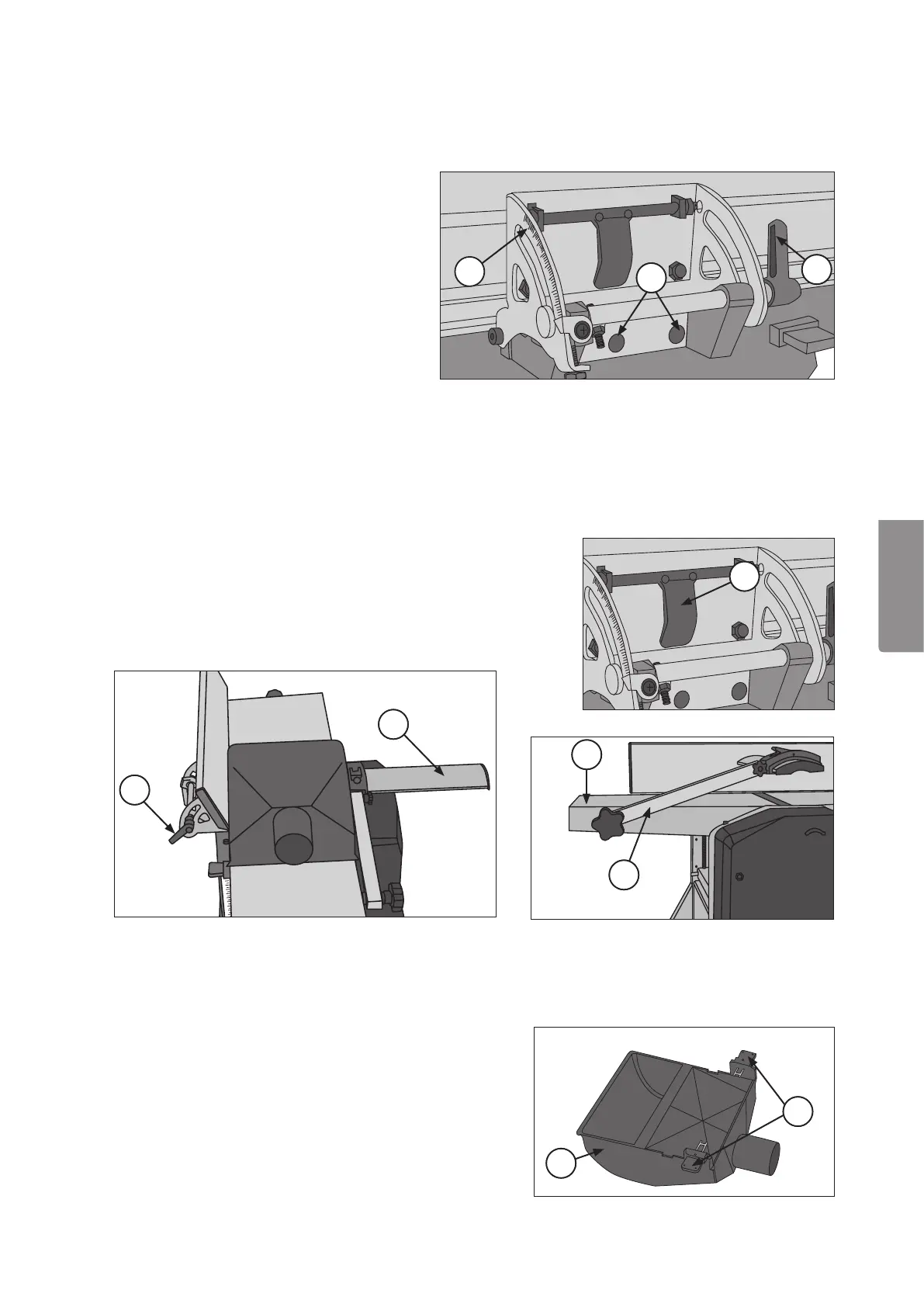 2. Avaa lukituskahva (B) ja käännä vähäntukea. 3. Irrota varsi (F) joka pitää kutterisuojaa (K)