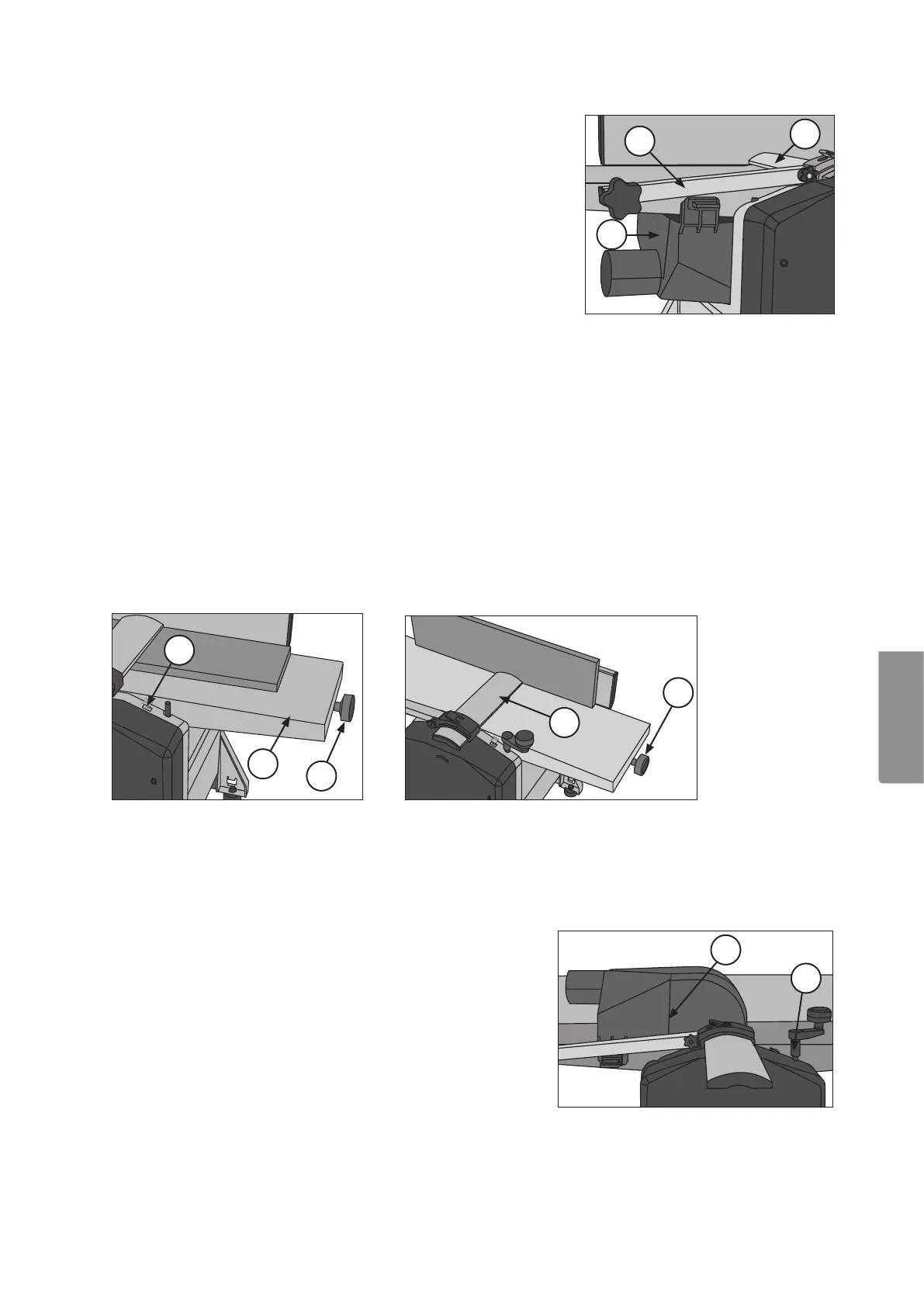 dieFeststellhebel in dieSchlitze im Abrichttisch (G) greifen, dann