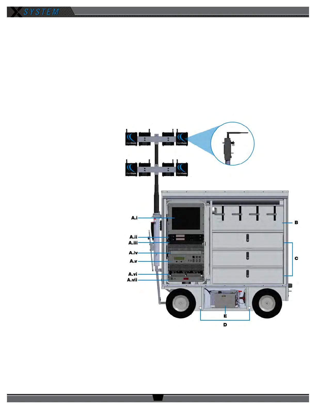 The X-System Sideline Cart houses the communications hardware and PC infrastructure that establish X-System and