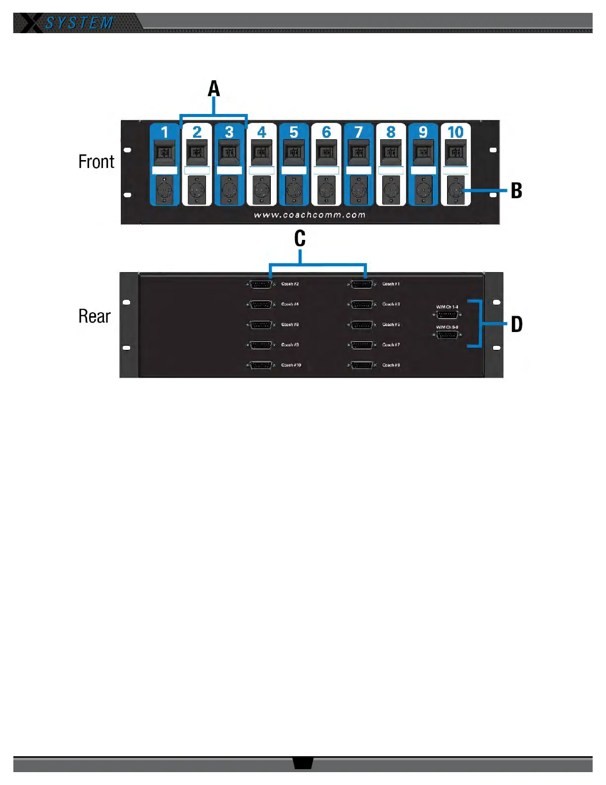 of talk lines to be made for each user on the system. Each wired user is plugged into the XLR provided under that coach’s