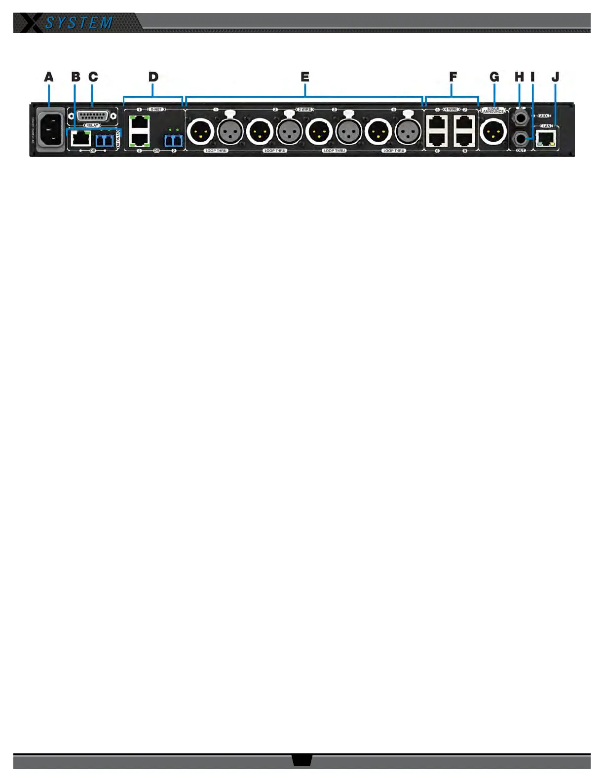 F. 4 WIRE Intercom Port (x 4): Not currently used with X-System