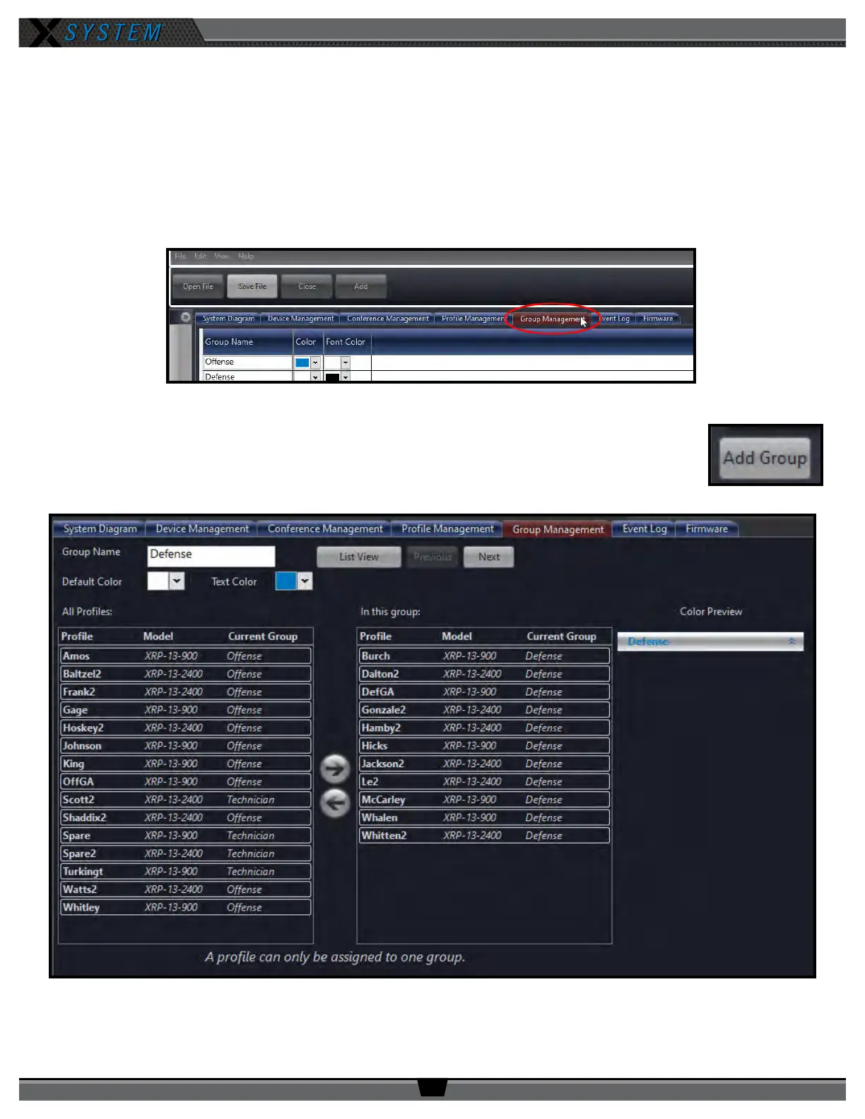 Use the procedures below to use the Prole Group feature of X-Ware.