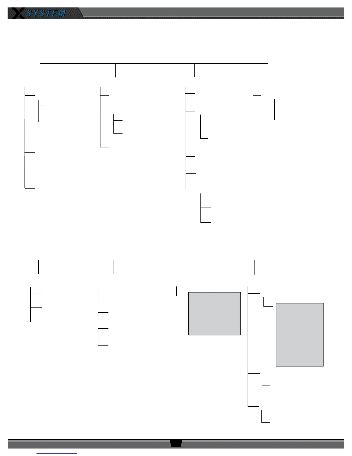 X-Ware interface on your personal PC. The following menu tree displays the Control Unit’s menu options and settings.