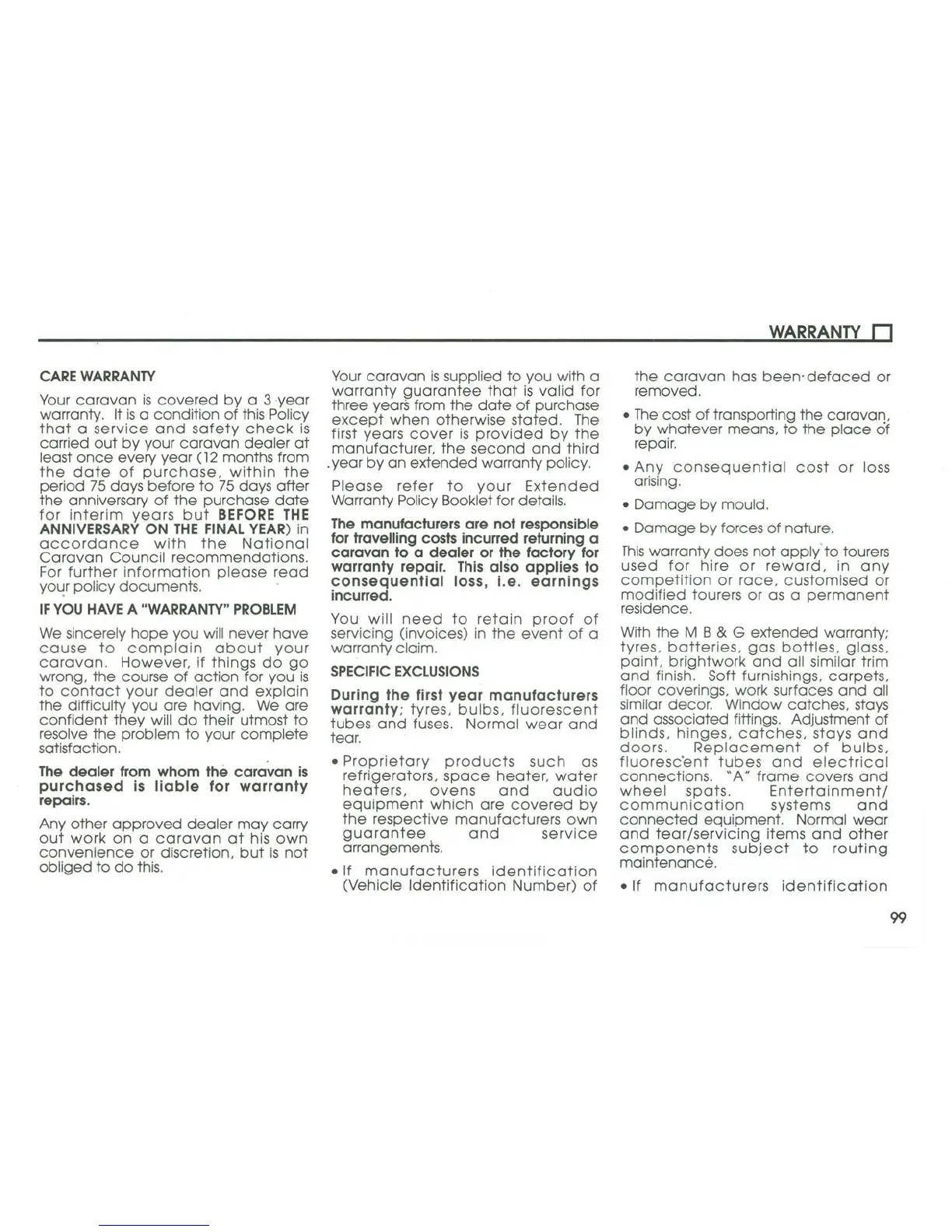 Coachman 2004 Amara - Warranty; Care Warranty; If You Have a Warranty Problem; Specific Exclusions
