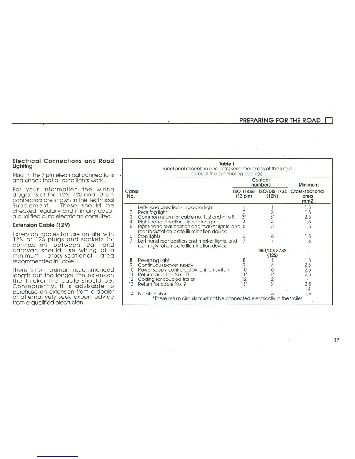 Coachman 2004 Amara - Electrical Connections and Road Lighting; Extension Cable (12 V)