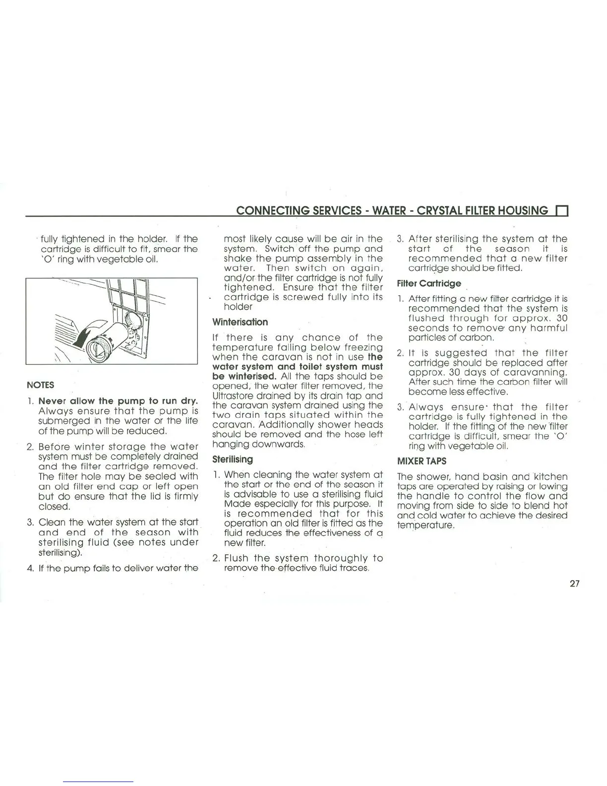 Coachman 2004 Amara - Water System Winterisation; Sterilising the Water System; Filter Cartridge; Mixer Taps