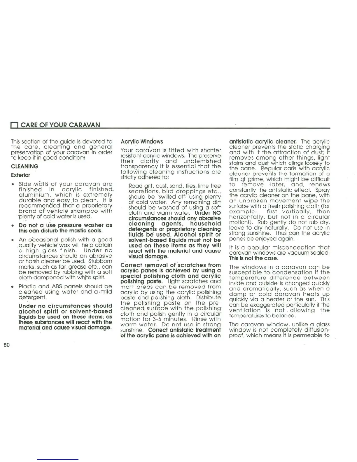 Coachman 2004 Amara - Care of Your Caravan; Cleaning; Exterior; Acrylic Windows