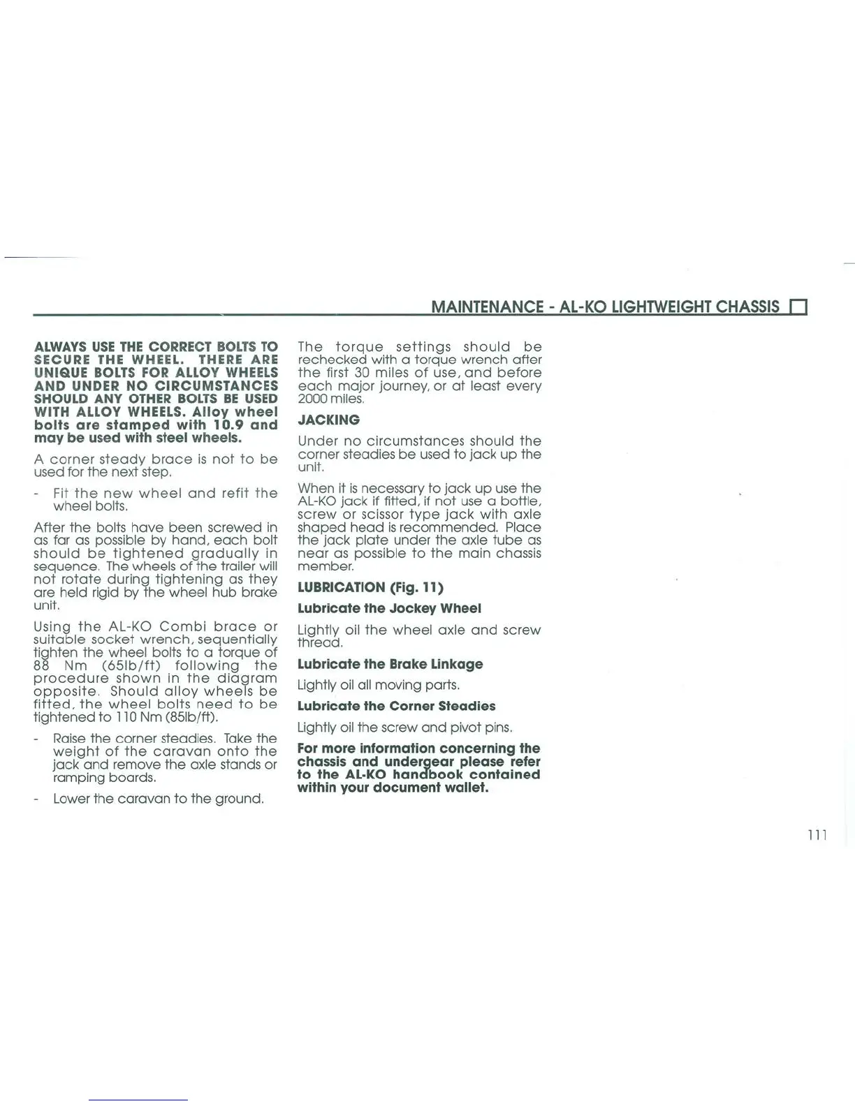 Coachman Amara - Jacking; Lubrication