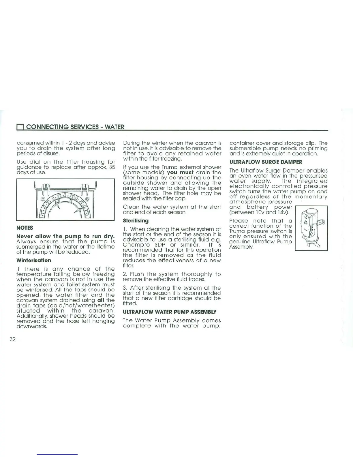 Coachman Amara - Ultraflow Water Pump Assembly; Ultraflow Surge Damper; Winterisation; Sterilising