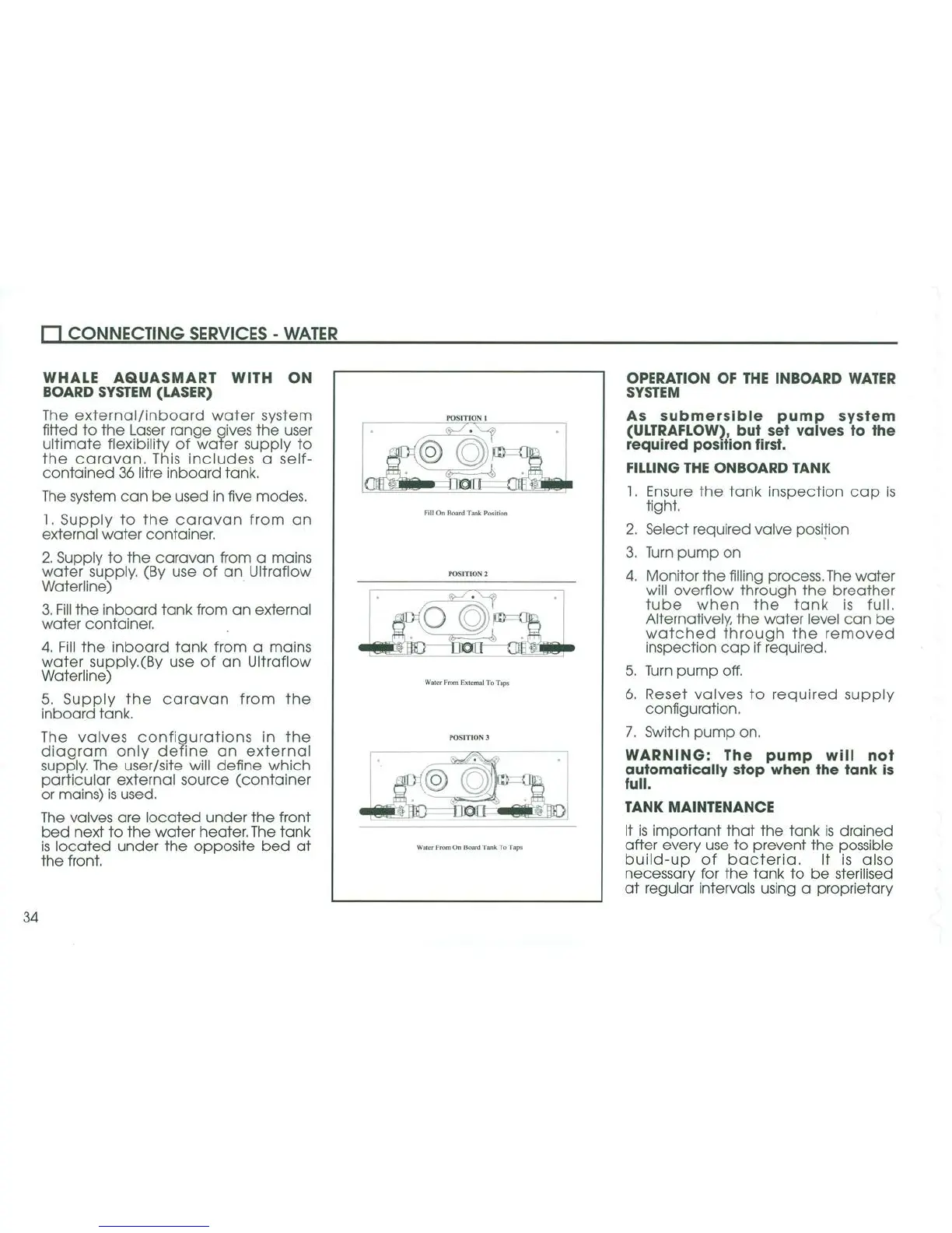 Coachman Amara - Whale Aquasmart with on Board System (Laser); Operation of the Inboard Water System; Filling the Onboard Tank; Tank Maintenance