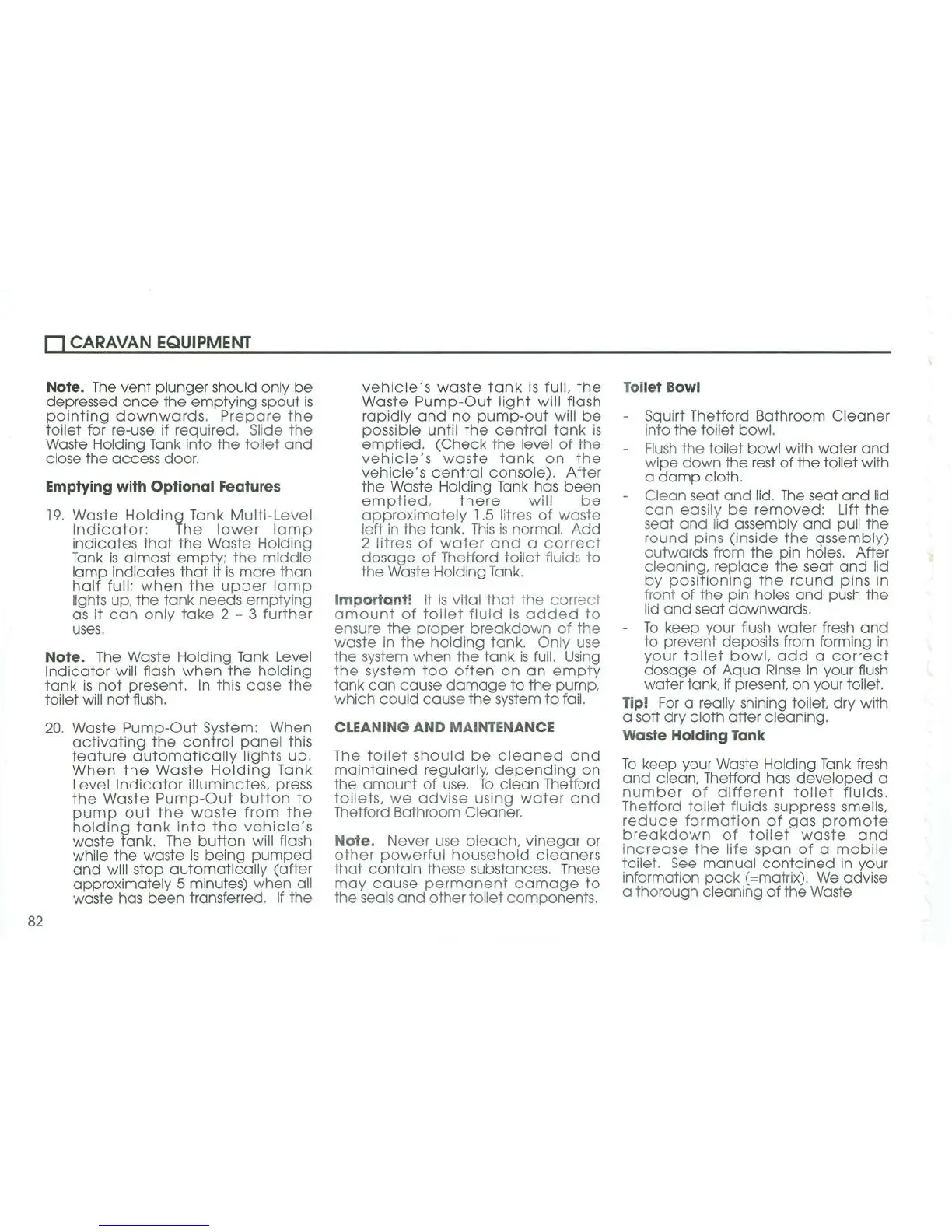 Coachman Amara - Cleaning and Maintenance; Emptying Wit Optional Features; Toilet Bowl