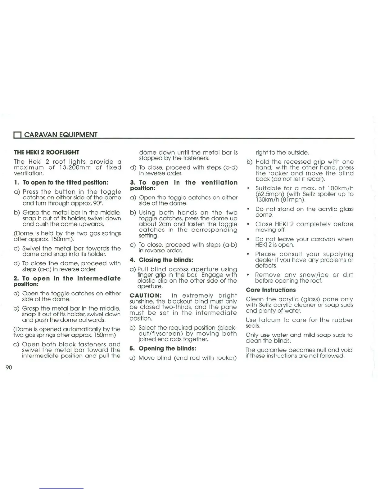 Coachman Amara - To Open to the Fitted Position; To Open in the Intermediate Position; To Open in the Ventilation Position; Closing the Blinds