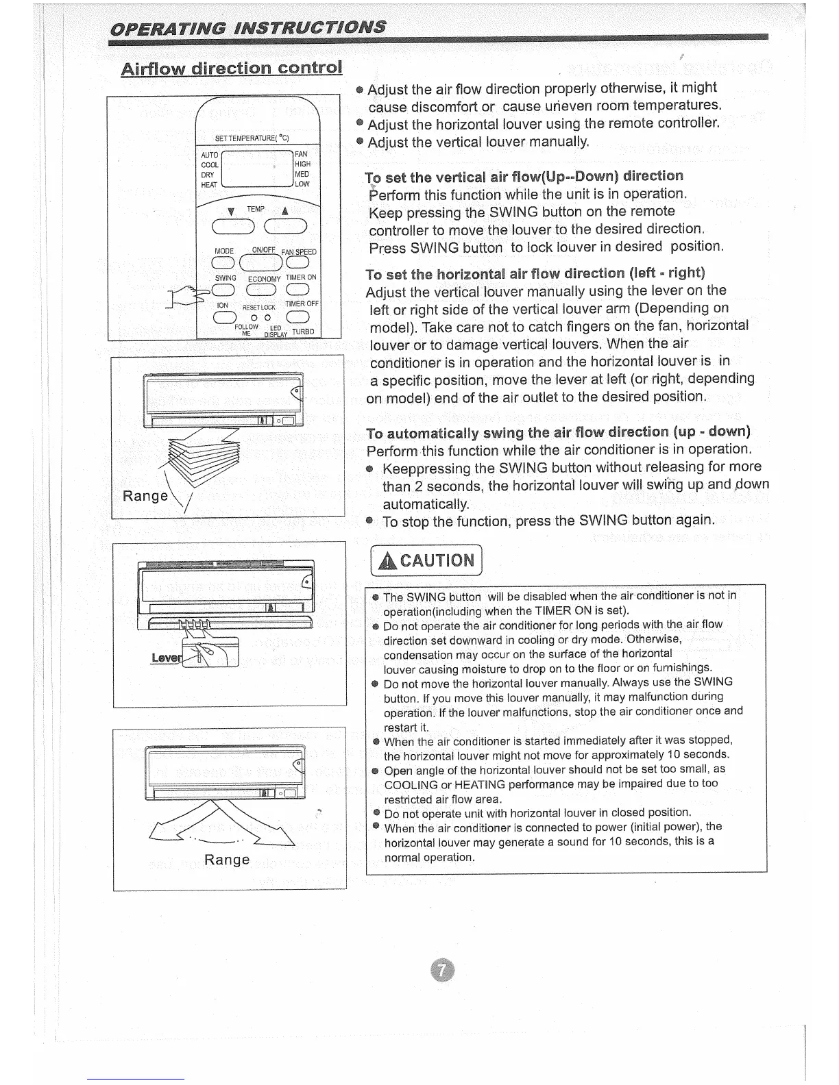 Coaire Split-Type Room Air Conditioner - Airflow Direction Control; To Set the Vertical Air Flow (Up-Down) Direction; To Set the Horizontal Air Flow Direction (Left-Right); To Automatically Swing the Air Flow Direction (Up-Down)
