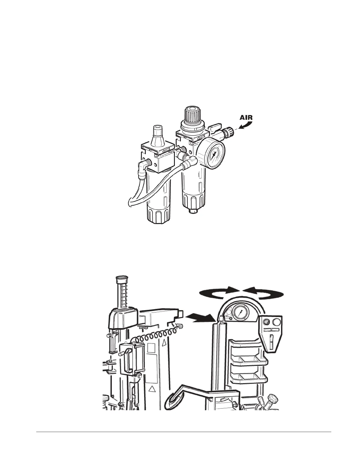 Connect the machine to the compressed air supply using the fitting on the lubricator on the back of the