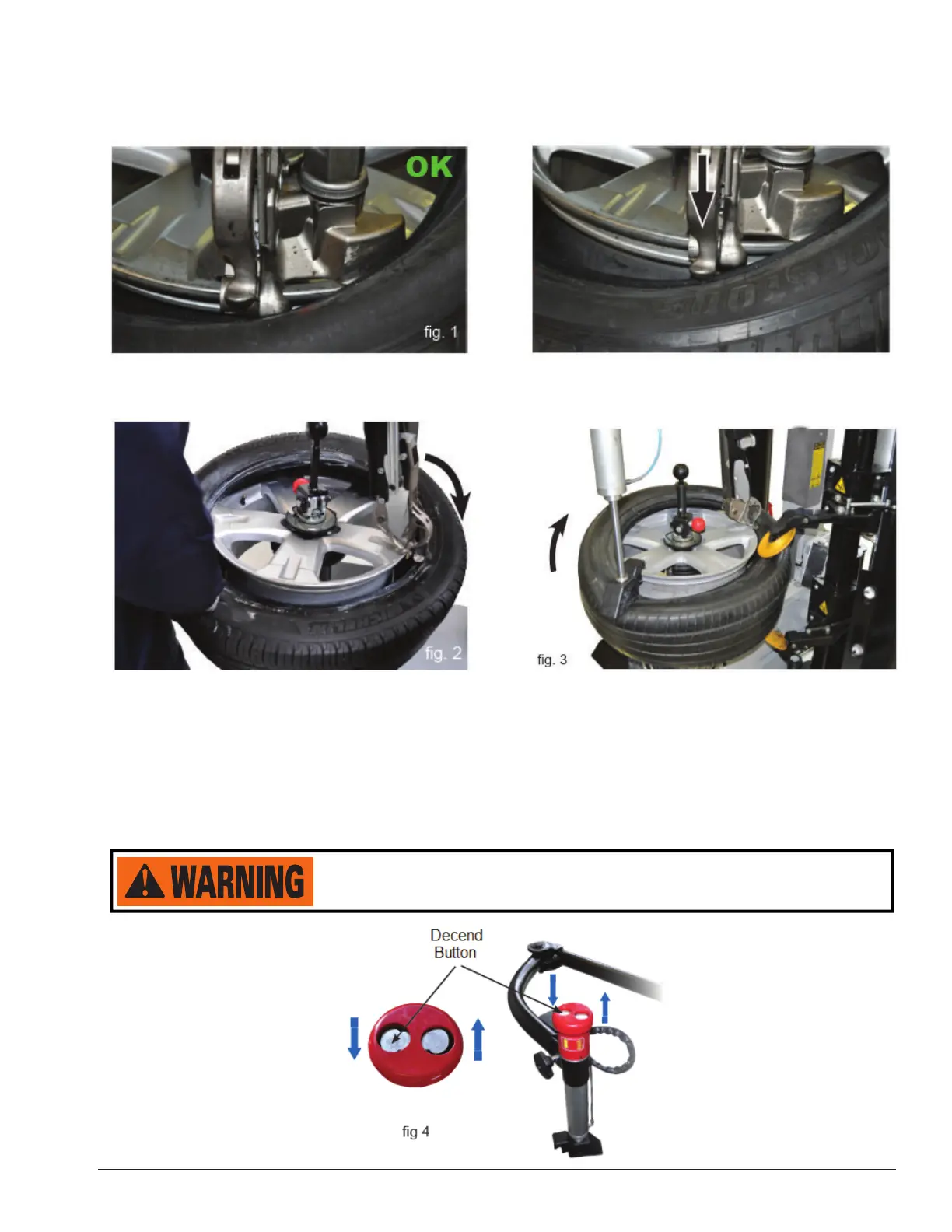 Press the buttons (fig. 4) to use using the bead pressing tool to push on the tire bead at “5 o’clock” position,