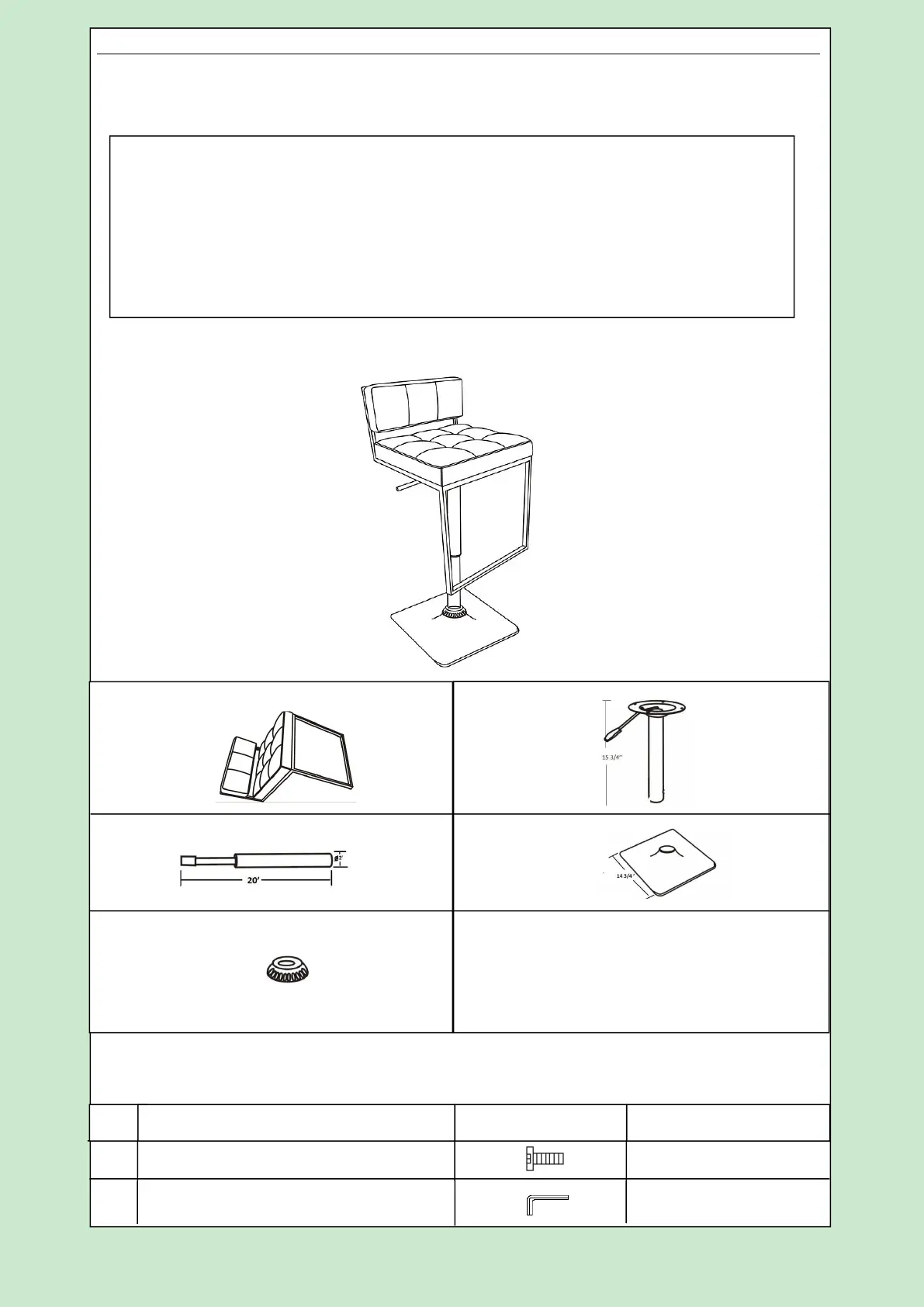 2. Please check to see that all hardware and parts are present prior to start of assembly.