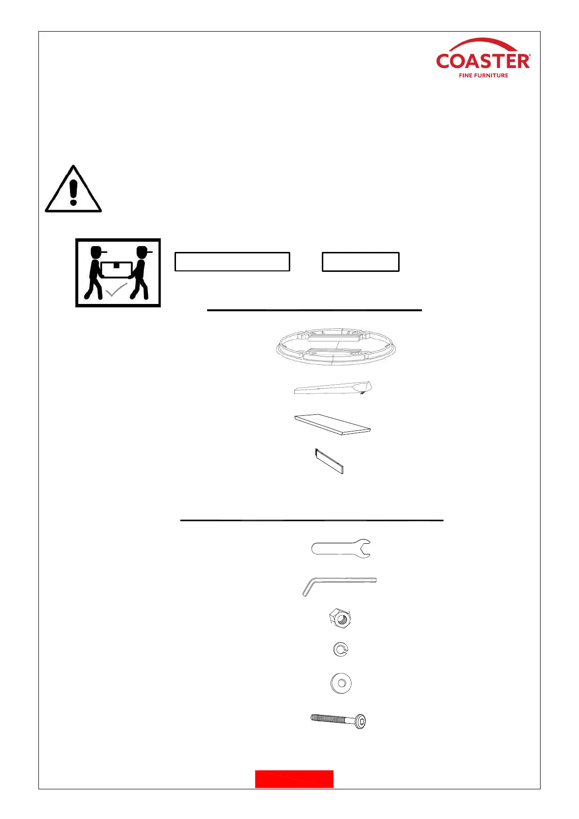2. Please check to see that all hardware and parts are present prior to start of assembly.