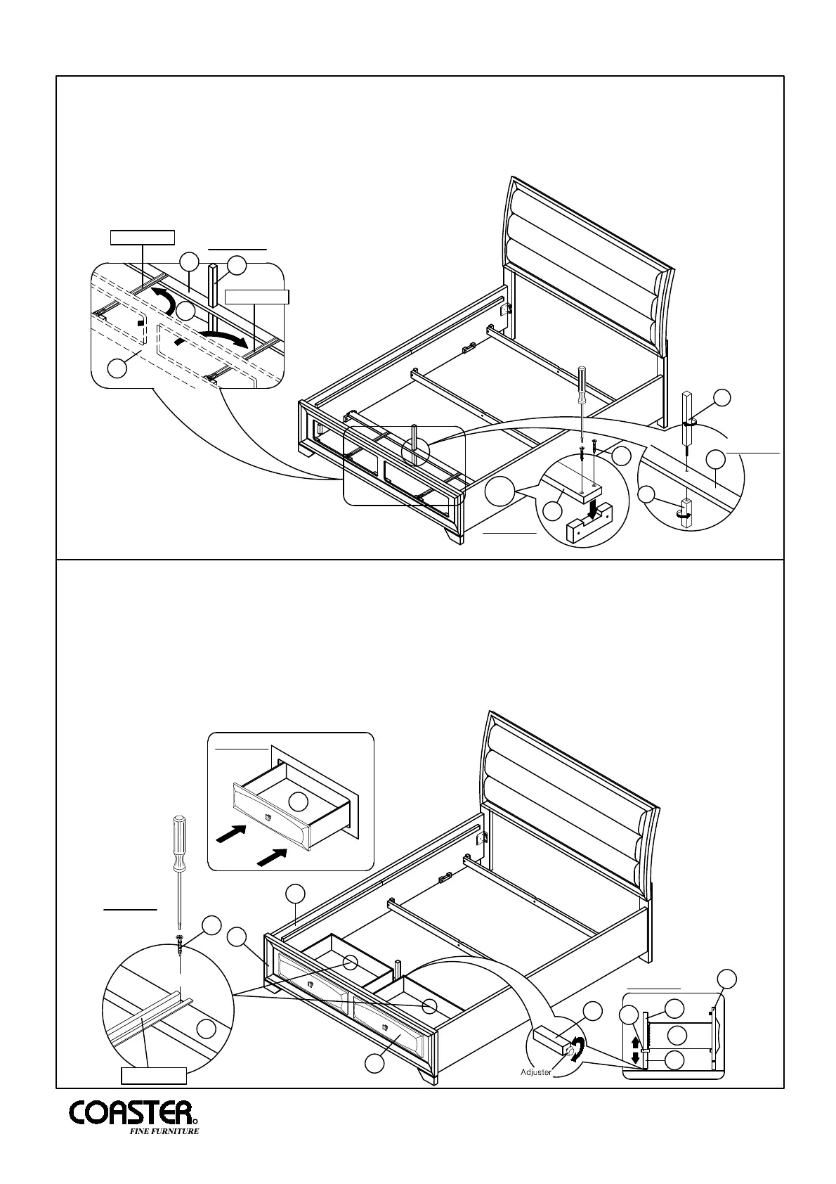 bar (N) and drawer bottom trestle bar (J) by turning clockwise until tight.