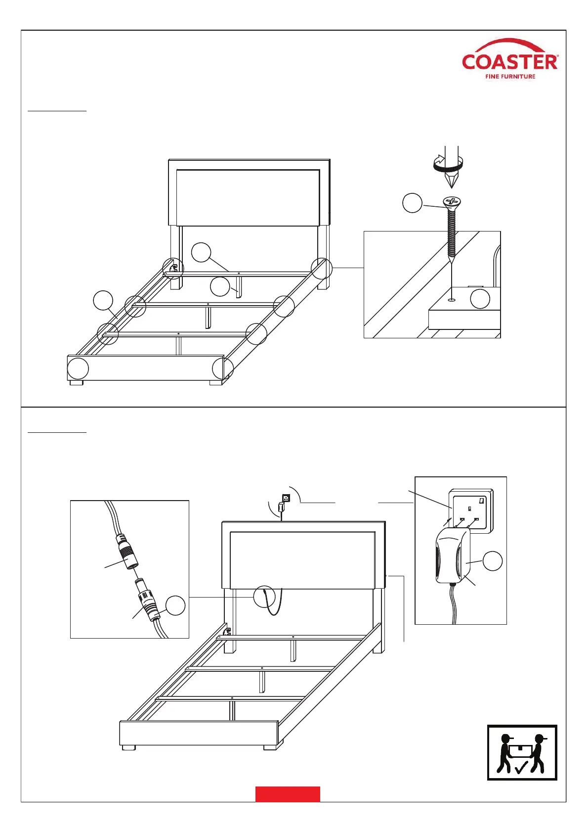 Coaster 222831F - Step 5: Secure Bed Slats to Frame; Step 6: Connect Power and Touch Sensor
