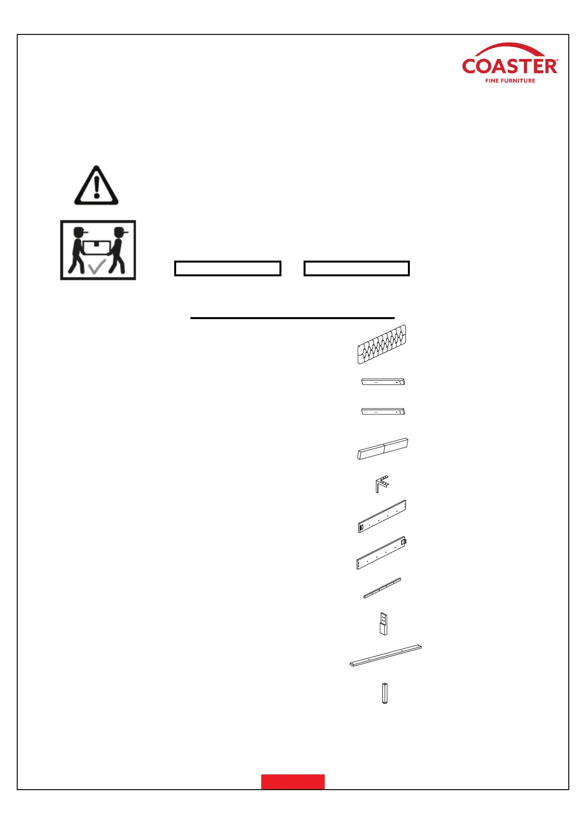 2. Please check to see that all hardware and parts are present prior to start of assembly.
