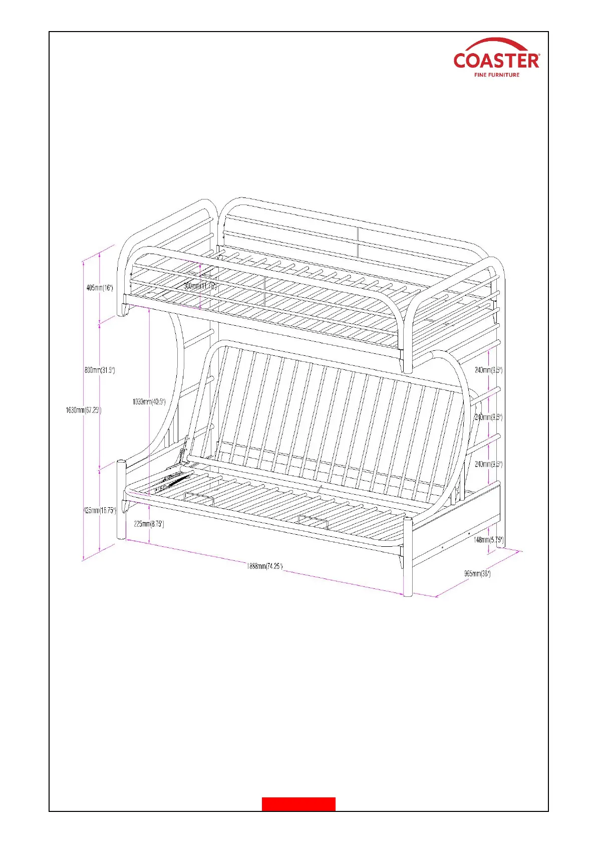 Coaster 2253K - Product Dimension