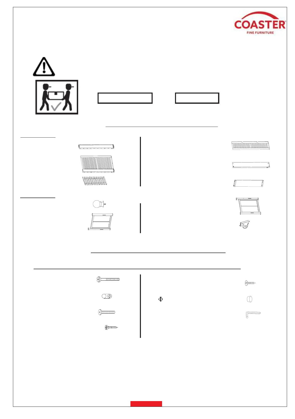 2. Please check to see that all hardware and parts are present prior to start of assembly.