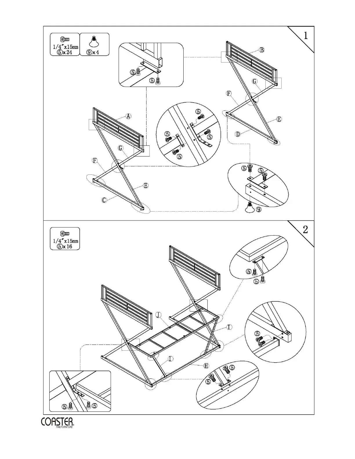 Coaster 400034F - Step-by-Step Assembly Process; Frame Construction (Steps 1-2)