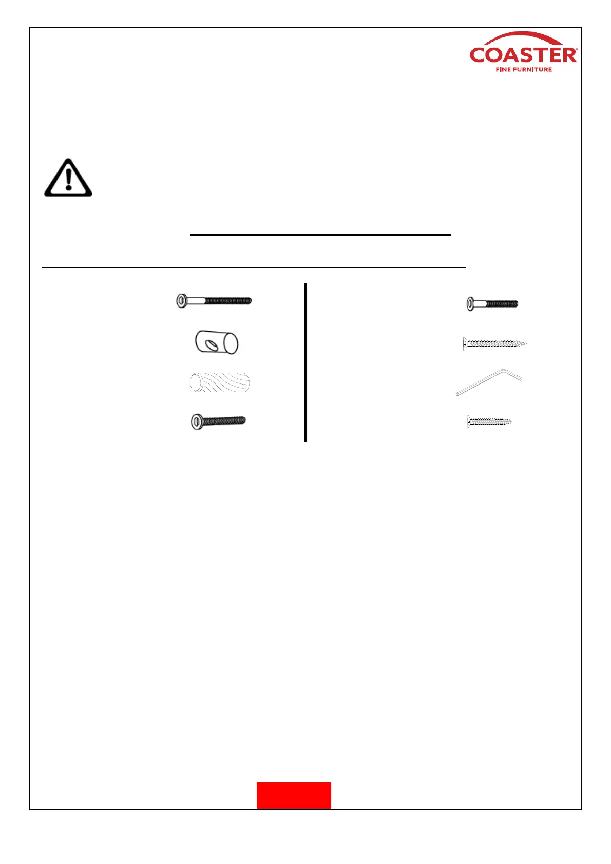 Please check to see that all hardware and parts are present prior to start of assembly.