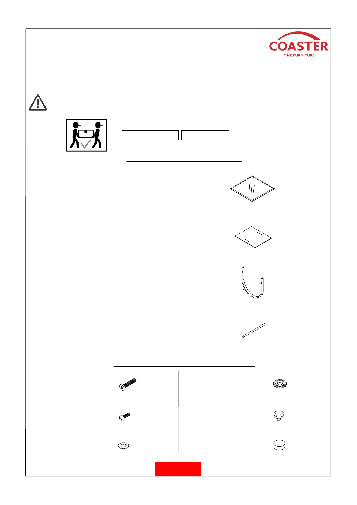 2. Please check to see that all hardware and parts are present prior to start of assembly.