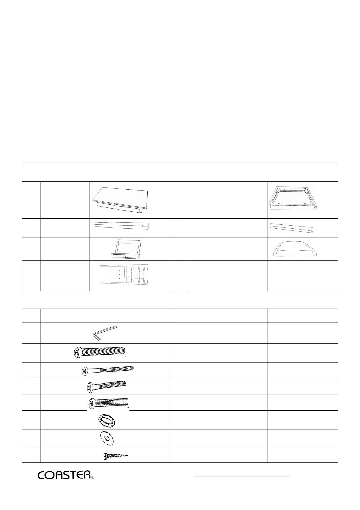 Please check to see that all hardware and parts are present prior to start of asscmbly.