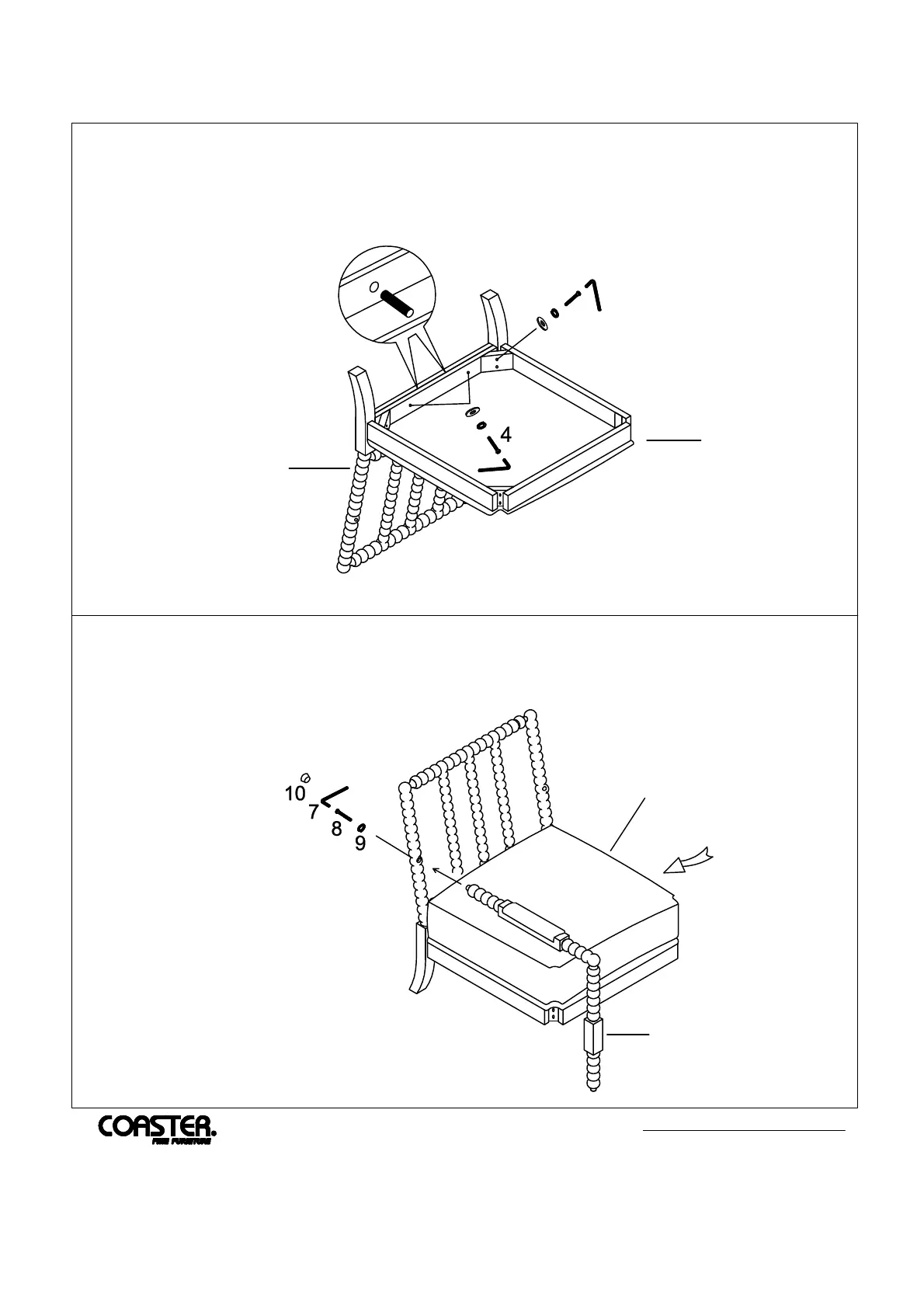 Coaster 903824 - Step 1: Initial Frame Assembly; Step 2: Attaching Seat and Arms