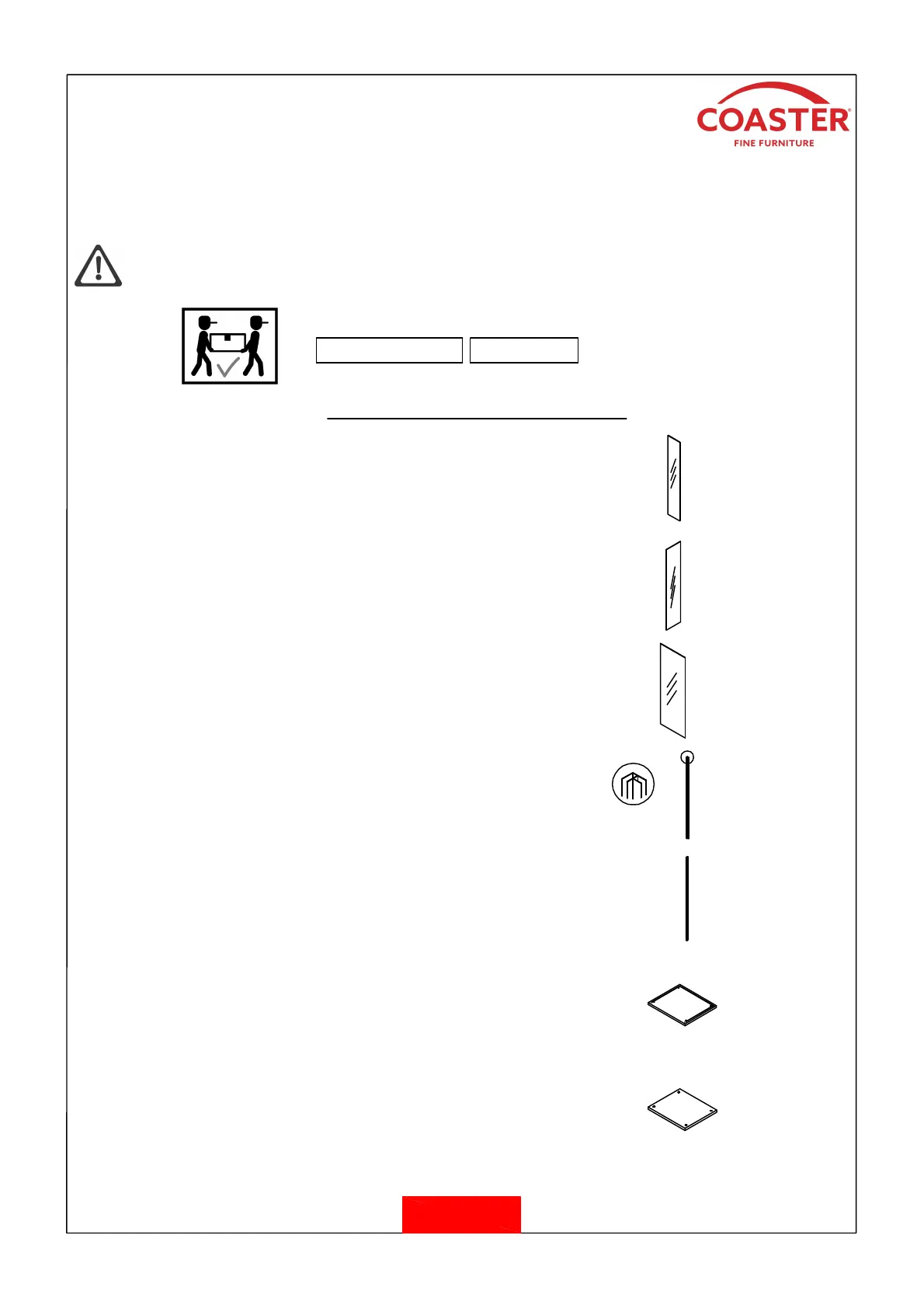 2. Please check to see that all hardware and parts are present prior to start of assembly.