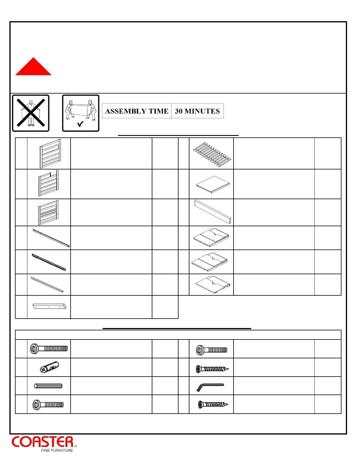 2. Please check to see that all hardware and parts are present prior to start of assembly.