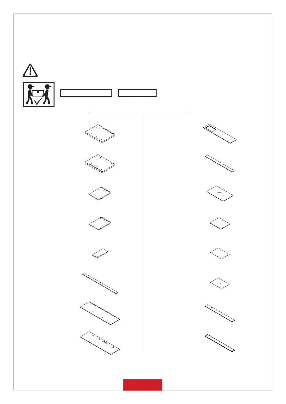 2. Please check to see that all hardware and parts are present prior to start of assembly.