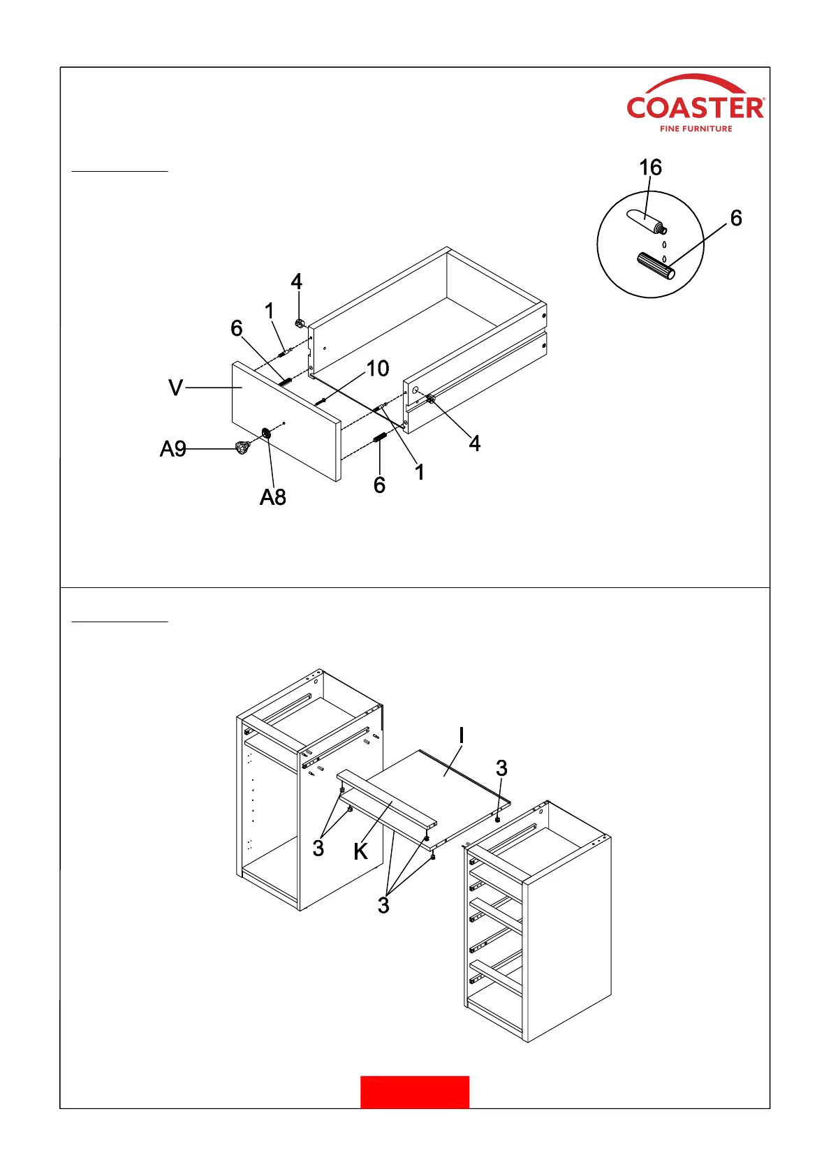 Coaster VANITY 931143 - Step 15: Assembling Medium Drawer Front; Step 16: Connecting Main Sections
