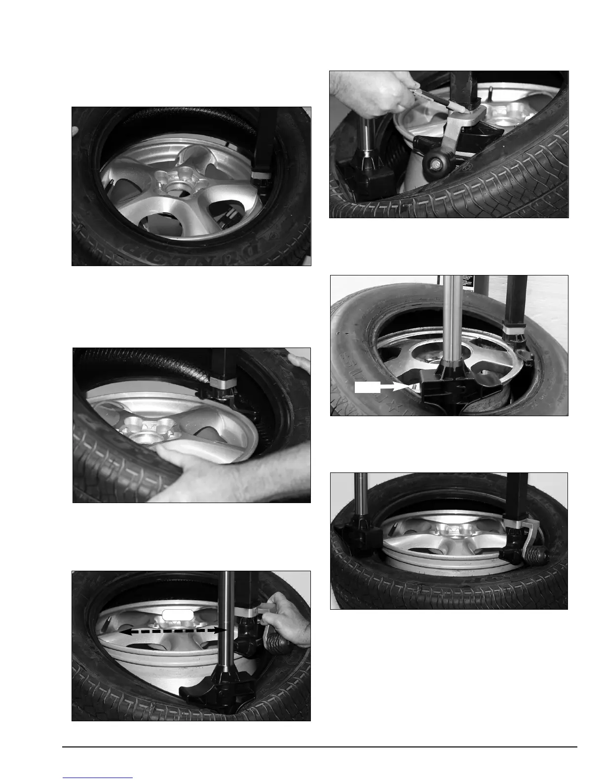 ing down on tire just ahead of the mounting tool, and