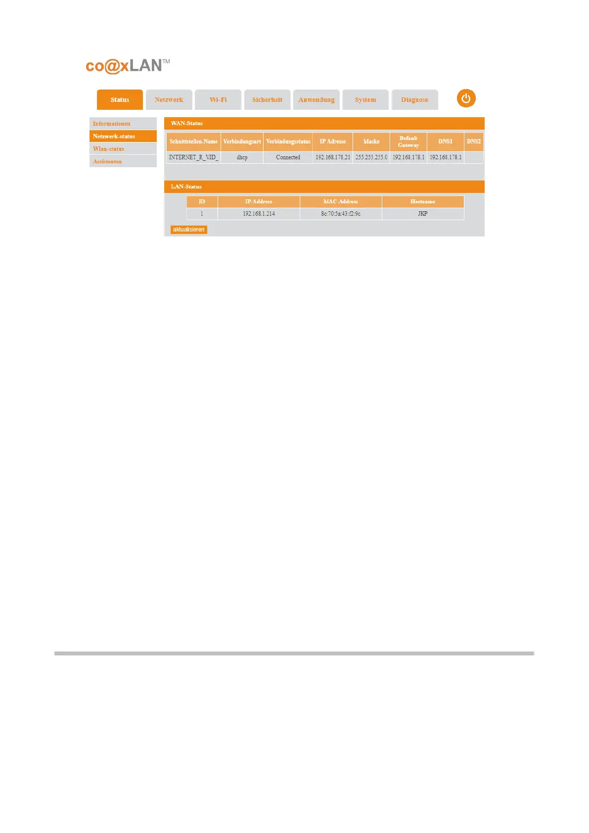 If the Wireless Status sub-menu is selected the screen shown in Picture is displayed.