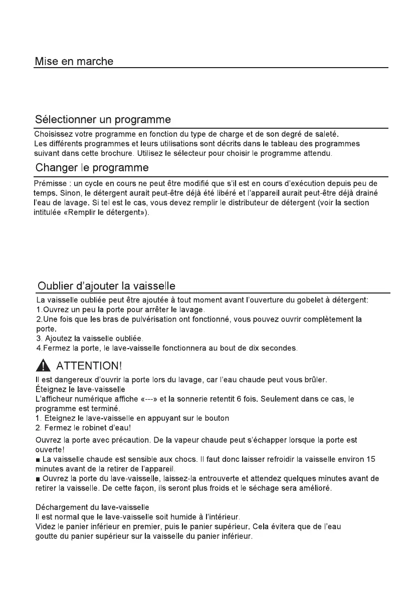 cycle de lavage .. ») ou appuyez sur le bouton pour changer de programme.