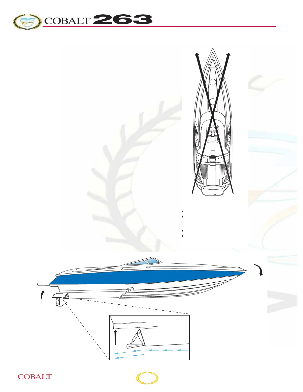 drive unit power trim system. Water is deflected