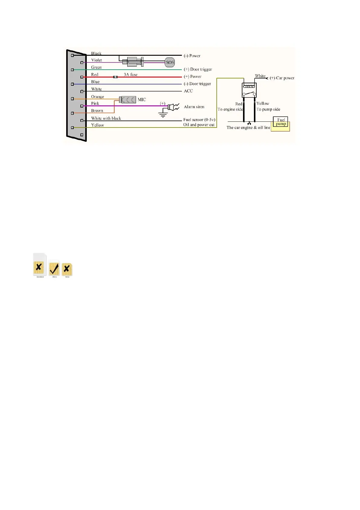 9. After inserting the SIM card, connect the positive and negative (red and black) wires of the