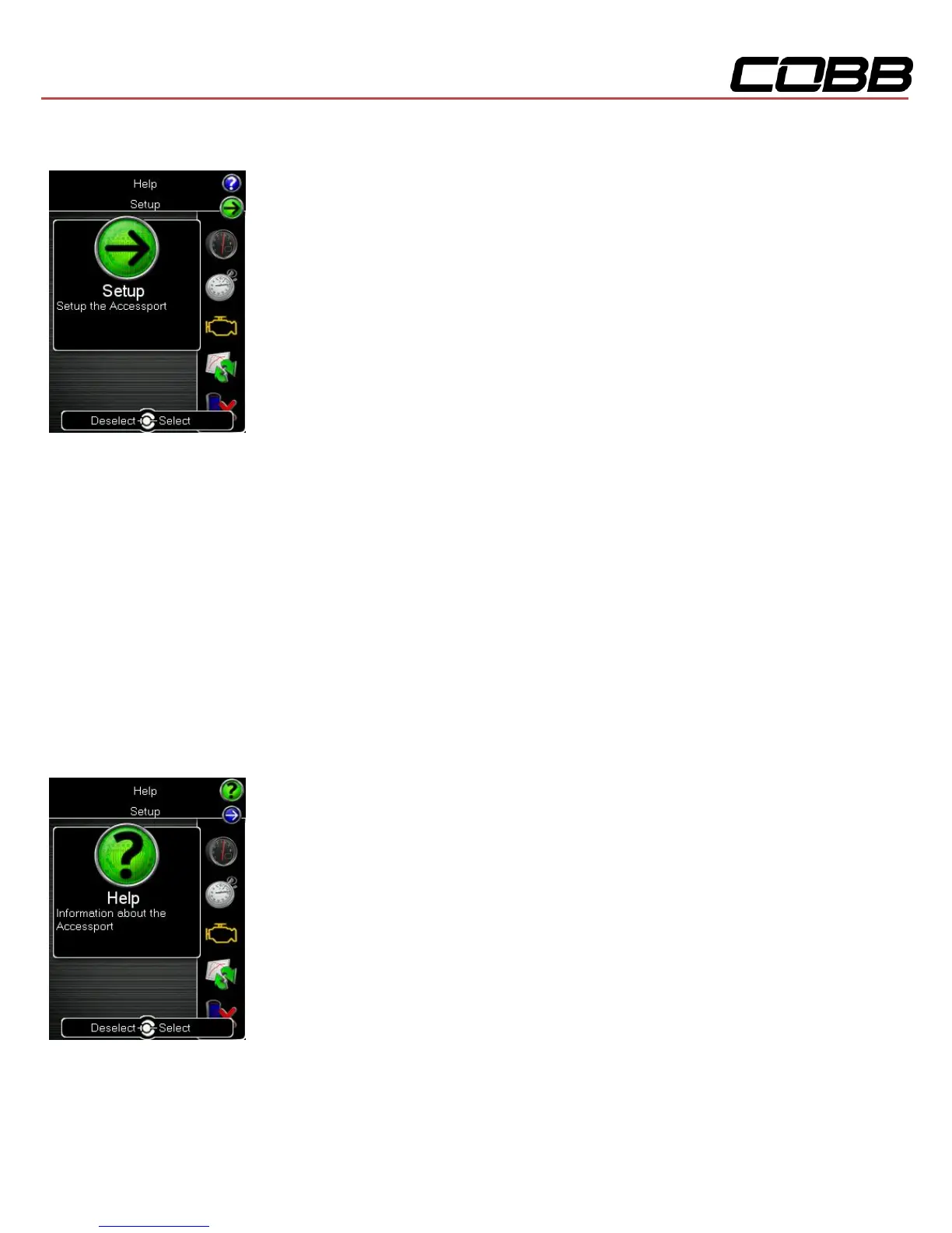 the Setup icon. From here you will have access to the following options: