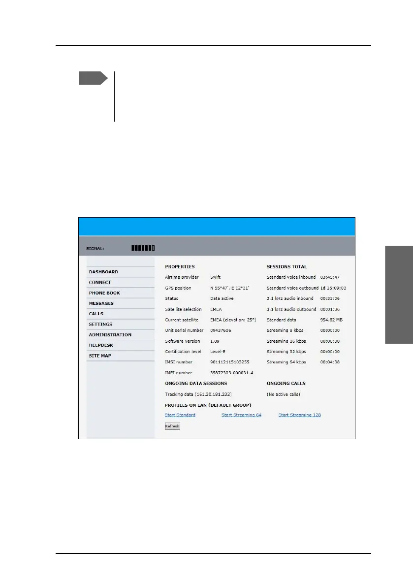 The Dashboard is the first screen that is displayed when you enter the IP