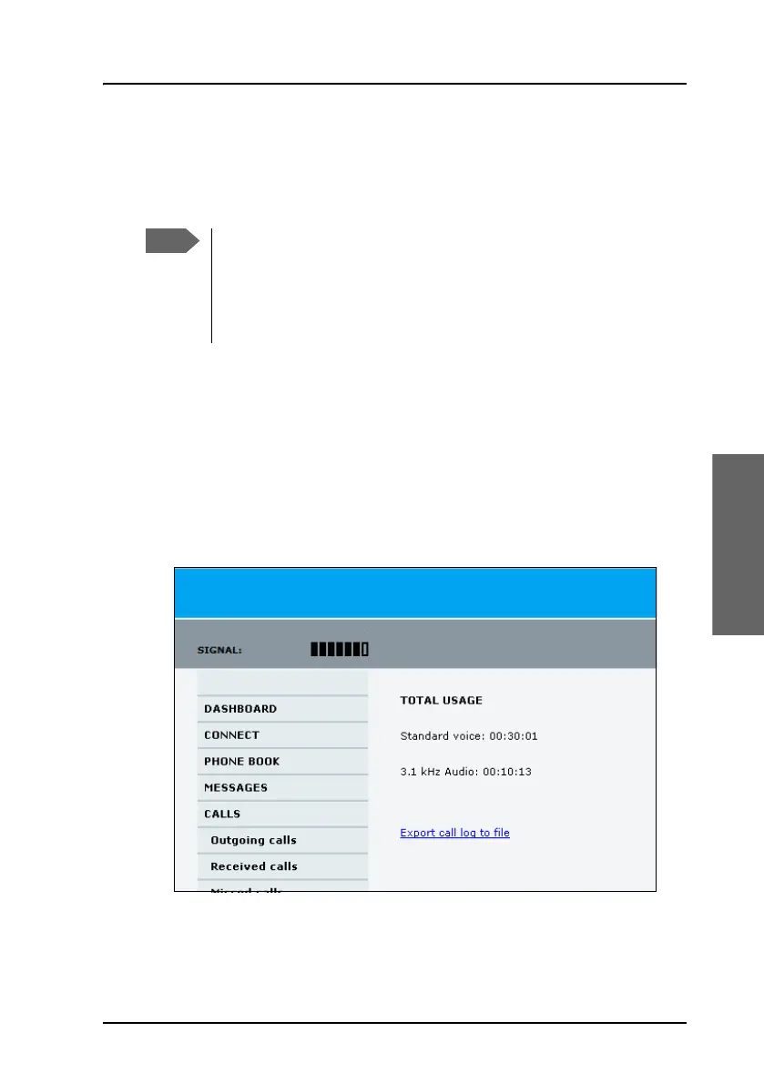 CALLS page contains information on usage for circuit switched connections.
