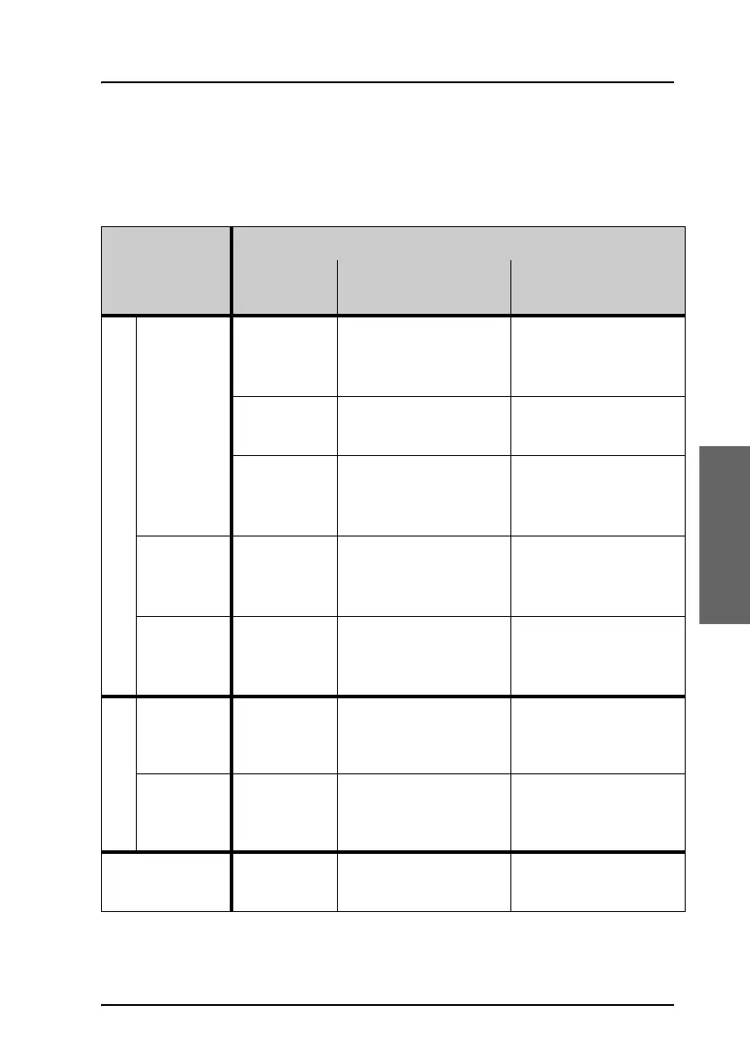 The following table shows the supported combinations of services and