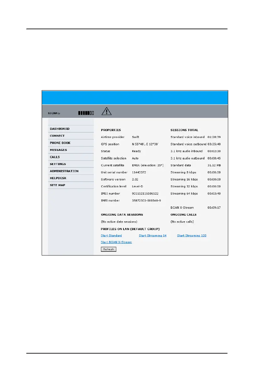 address of the web interface of the AVIATOR 700 system. The Dashboard is