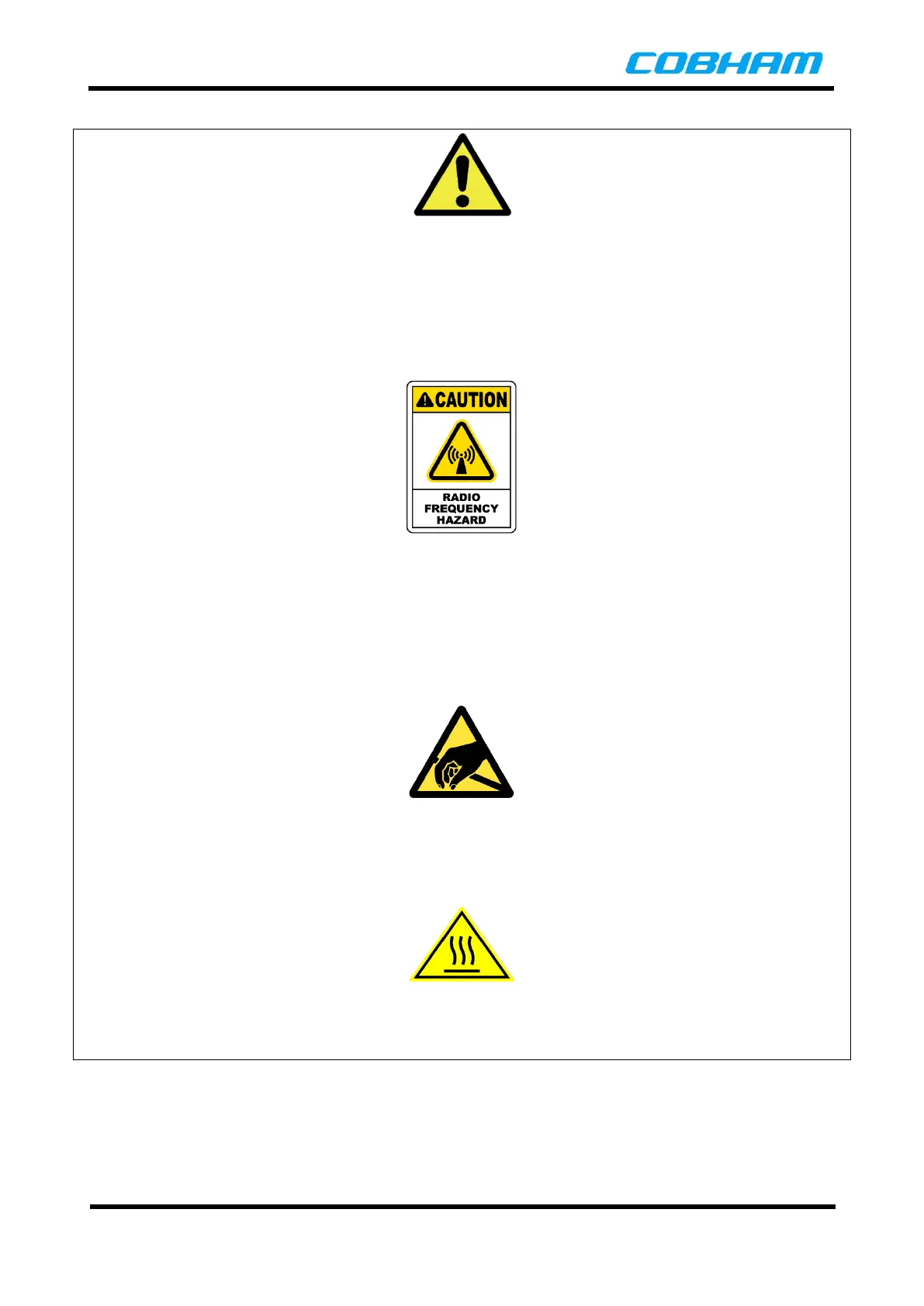 violate the safety standards of design, manufacture and intended use of the equipment. Cobham assumes
